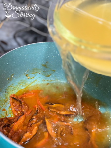 - Pour In the Broth, Add the chicken broth and stir until the curry paste dissolves.