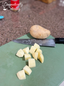 - Peel the Potatoes, Peel the potatoes and cut them into even cubes so they cook evenly.